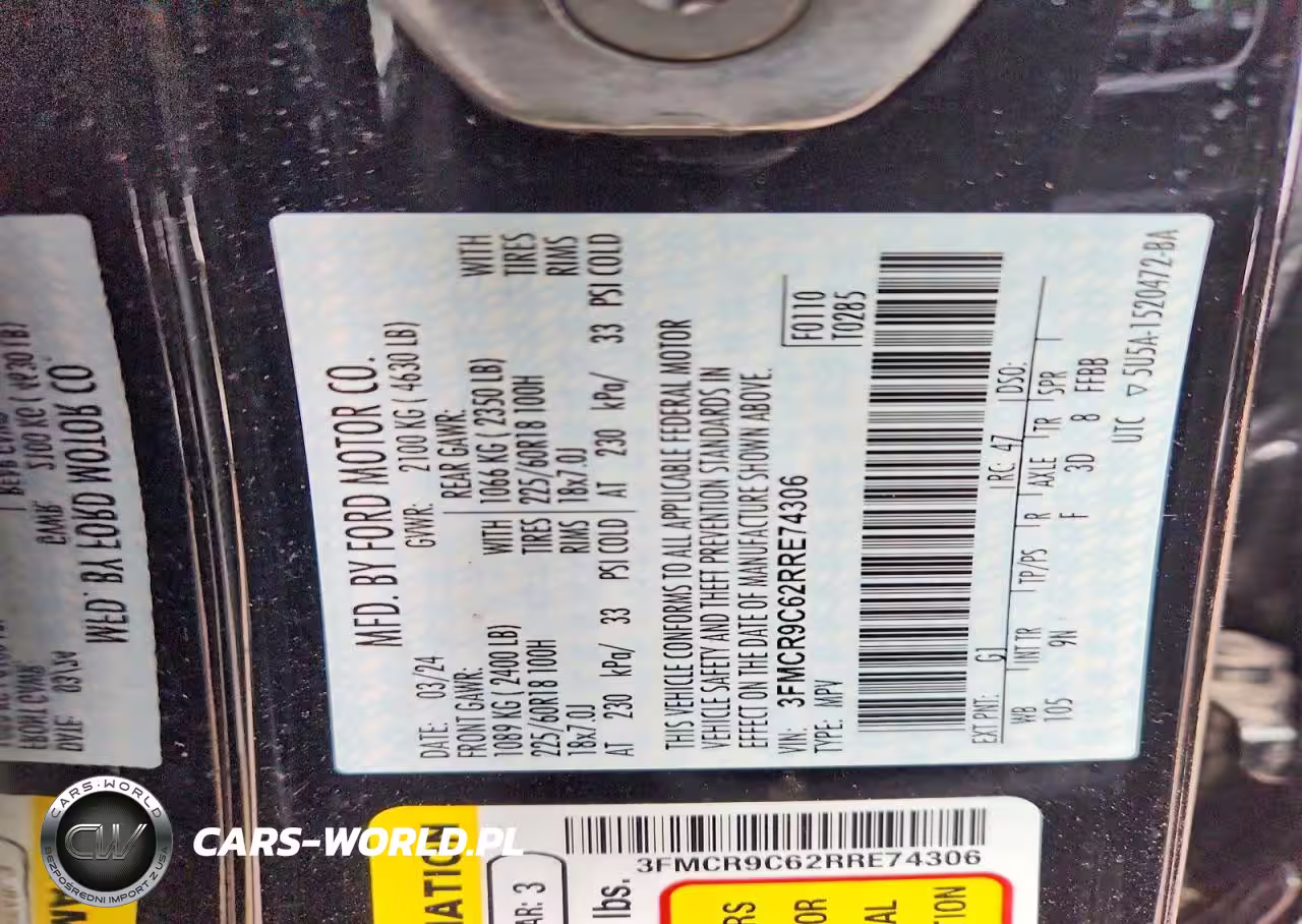 Copart Nr: C-77036895 VIN: 3FMCR9C62RRE74306 Port: Indianapolis, IN