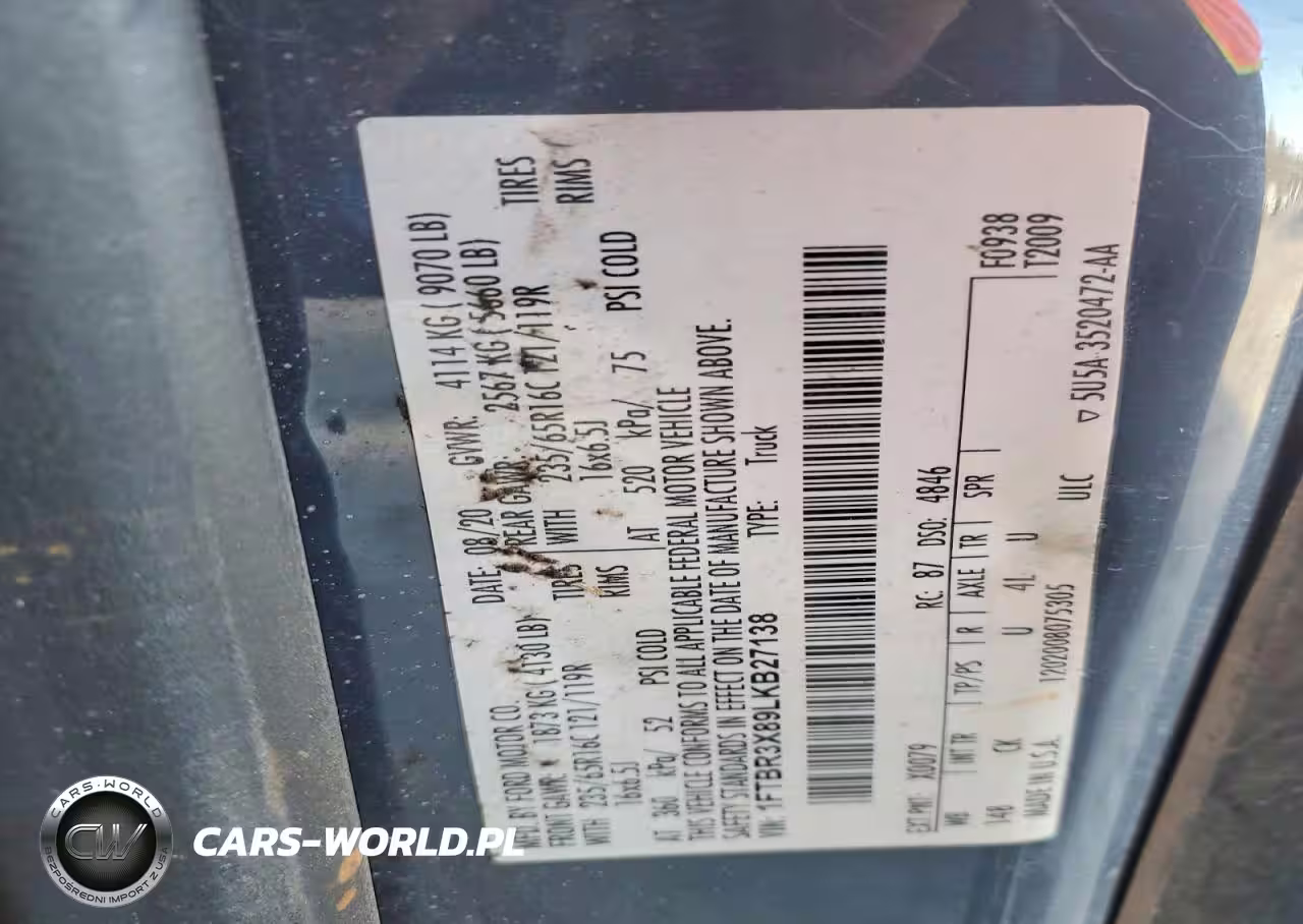 Copart Nr: C-77085775 VIN: 1FTBR3X89LKB27138 Port: Savannah, GA