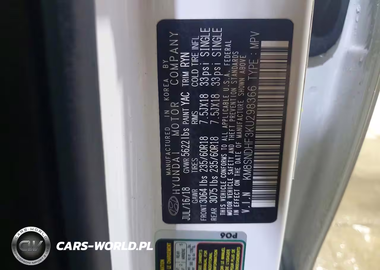 Copart Nr: C-77127425 VIN: KM8SNDHF3KU298366 Port: Elizabeth, NJ
