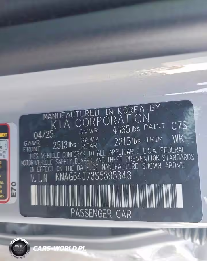 Copart Nr: C-77141015 VIN: KNAG64J73S5395343 Port: Savannah, GA