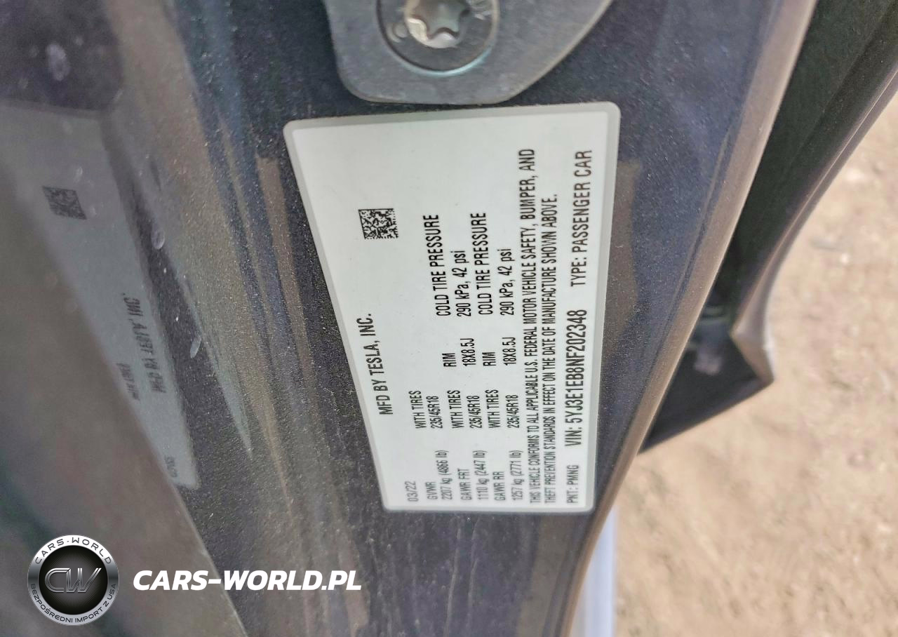 Copart Nr: C-77168595 VIN: 5YJ3E1EB8NF202348 Port: Indianapolis, IN
