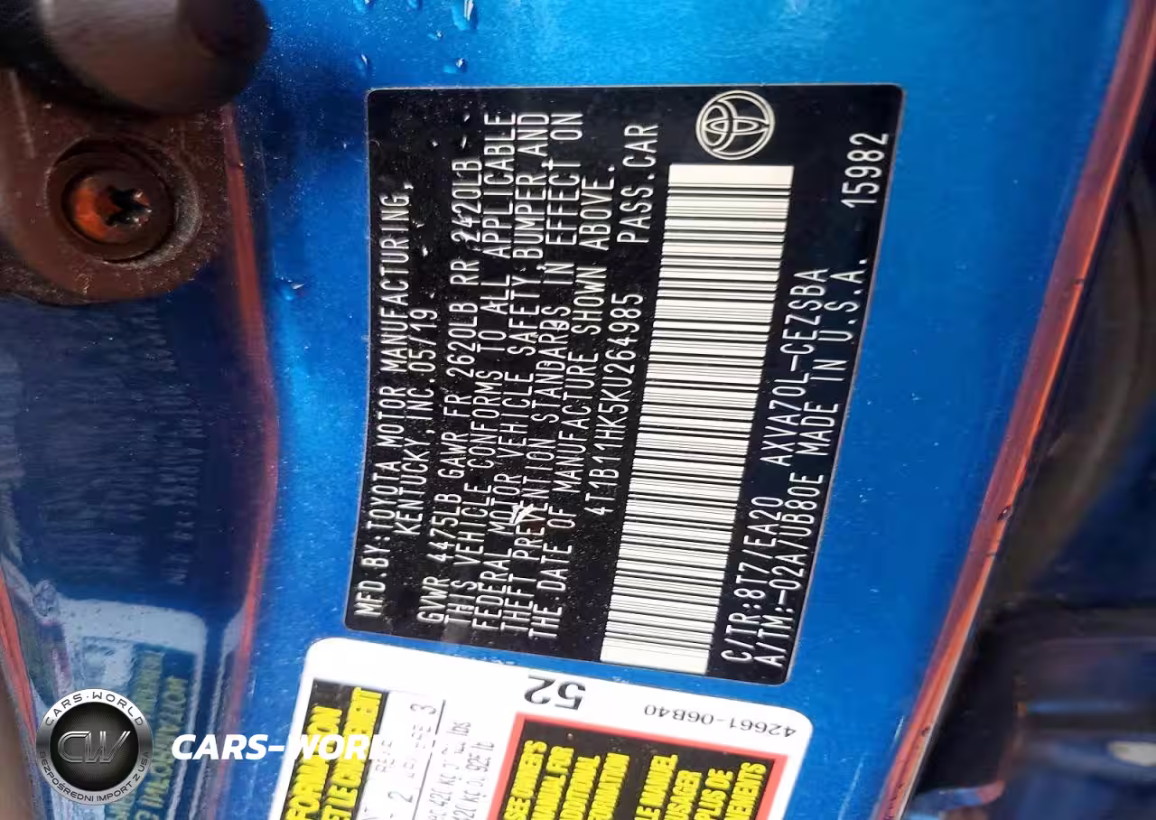 Copart Nr: C-77171345 VIN: 4T1B11HK5KU264985 Port: Los Angeles, CA