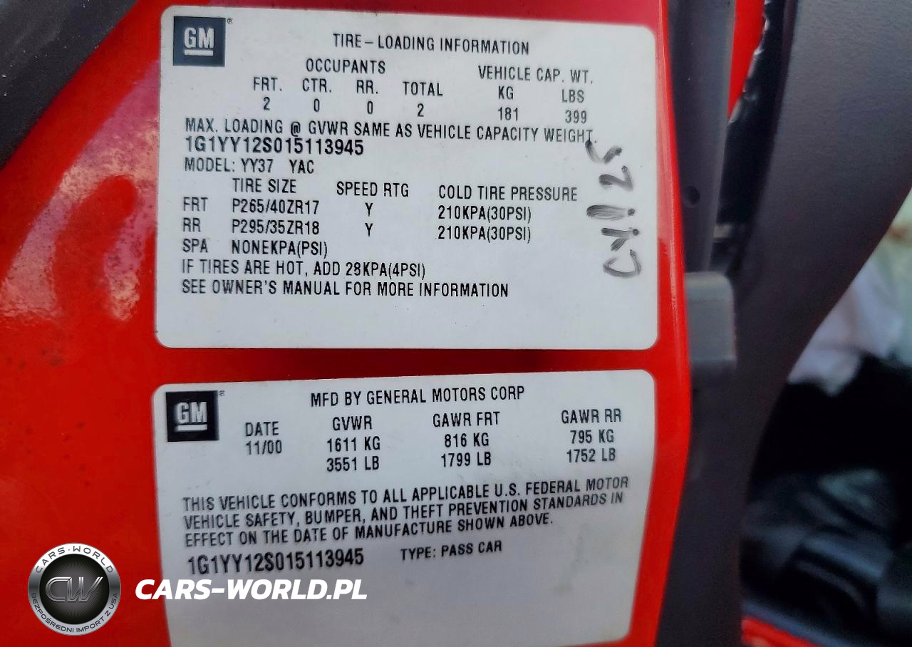 Copart Nr: C-77188575 VIN: 1G1YY12S015113945 Port: Savannah, GA