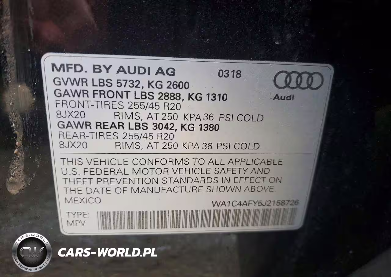 Copart Nr: C-77189335 VIN: WA1C4AFY5J2158726 Port: Indianapolis, IN