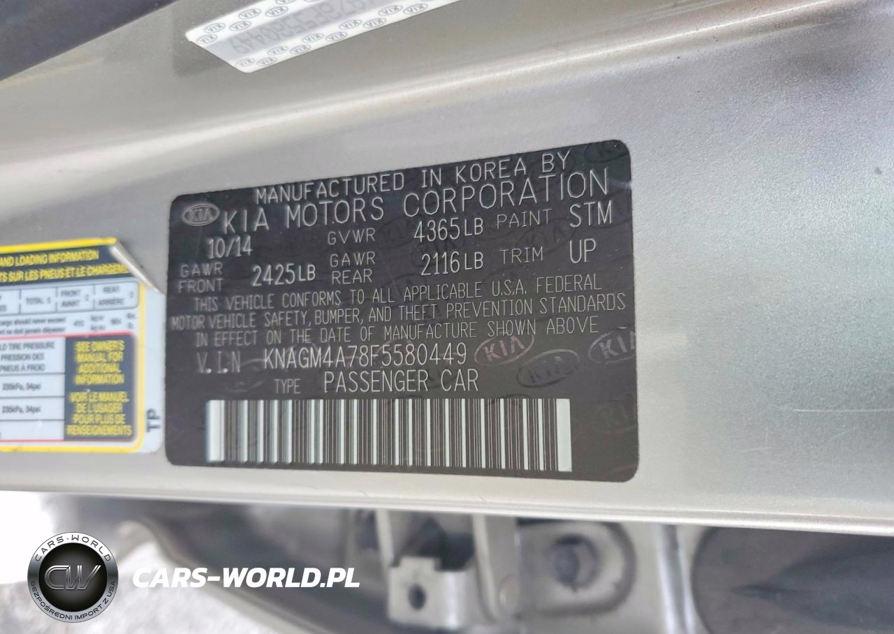 Copart Nr: C-77227275 VIN: KNAGM4A78F5580449 Port: Los Angeles, CA