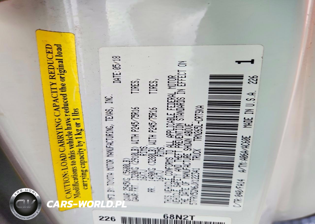 Copart Nr: C-77231965 VIN: 5TFRX5GN6JX122341 Port: Houston, TX