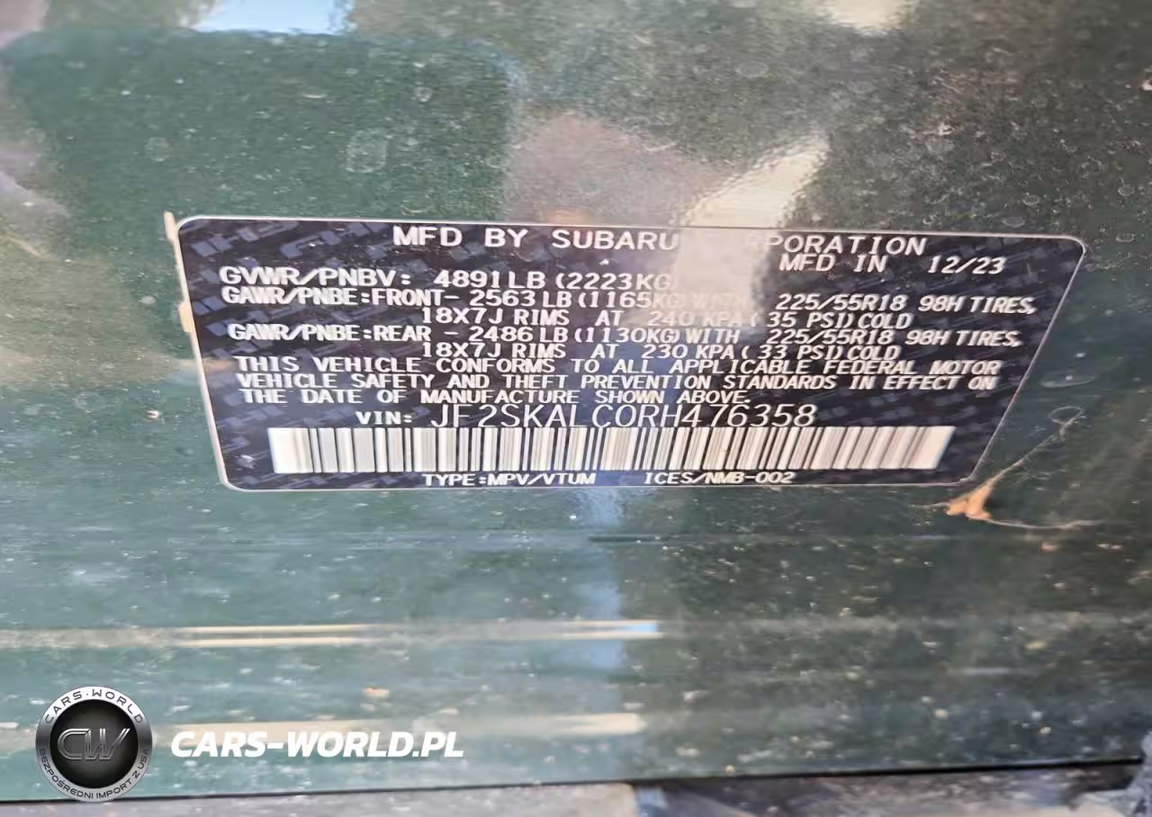 Copart Nr: C-77234805 VIN: JF2SKALC0RH476358 Port: Indianapolis, IN