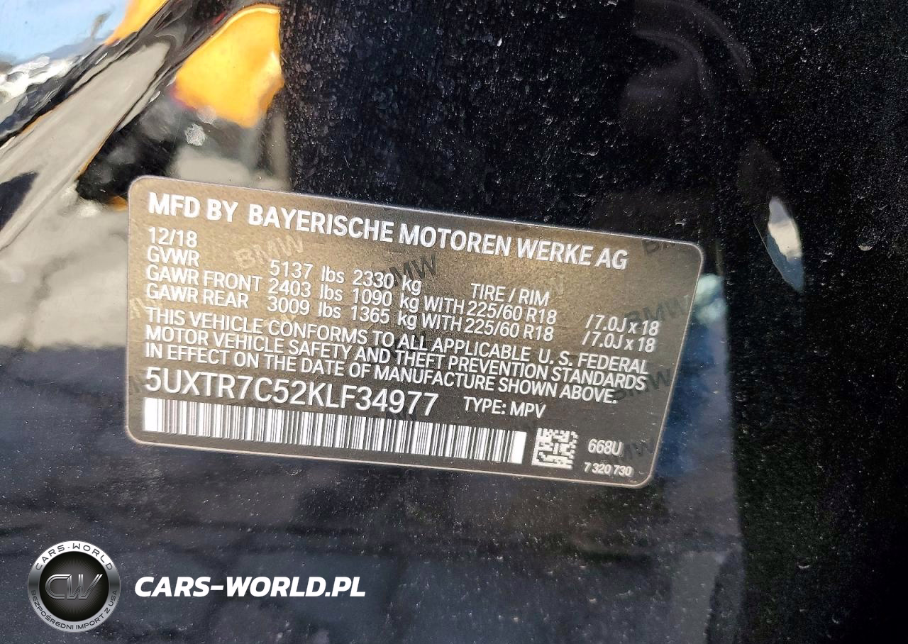 Copart Nr: C-77245075 VIN: 5UXTR7C52KLF34977 Port: Los Angeles, CA