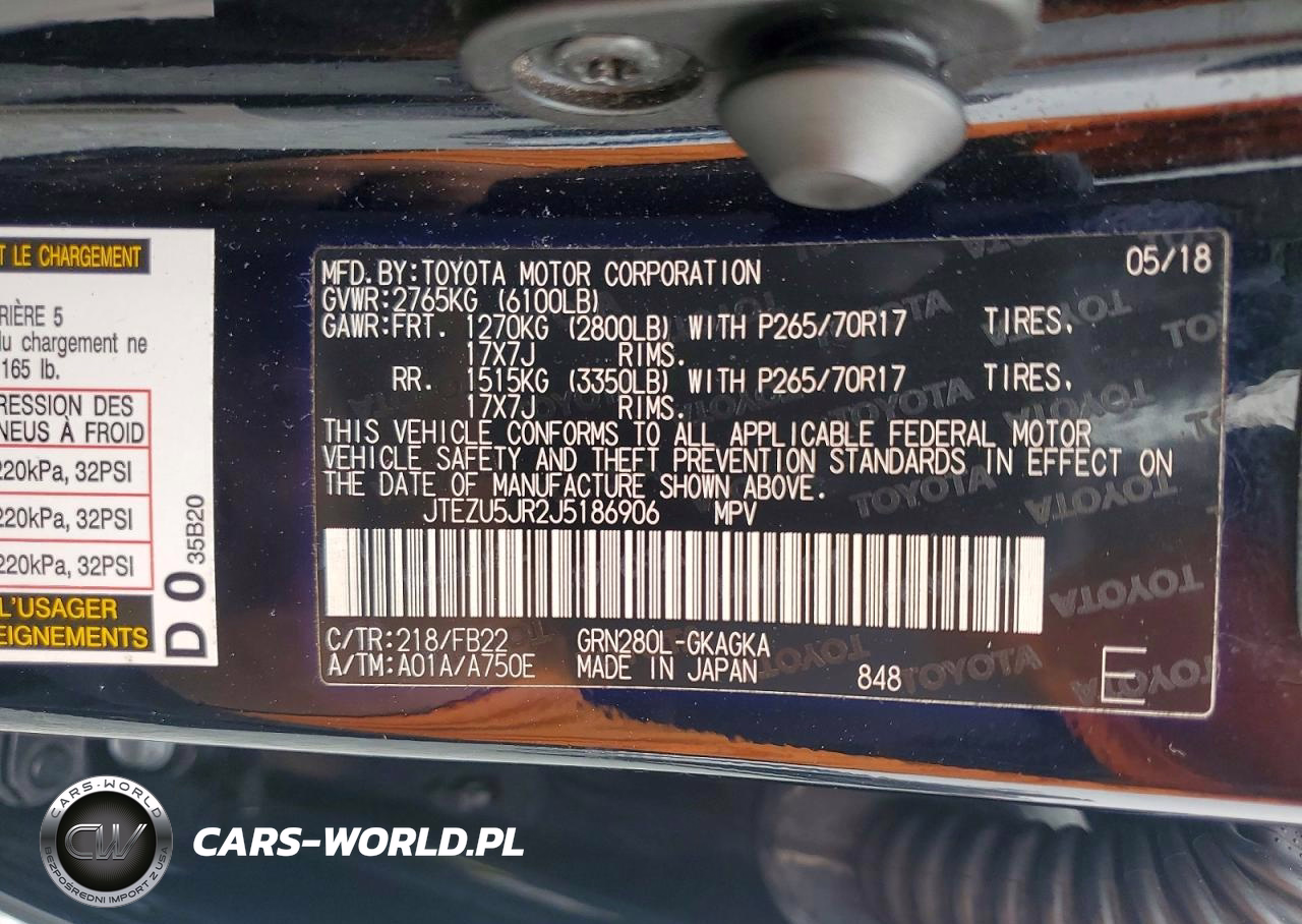 Copart Nr: C-77344685 VIN: JTEZU5JR2J5186906 Port: Savannah, GA