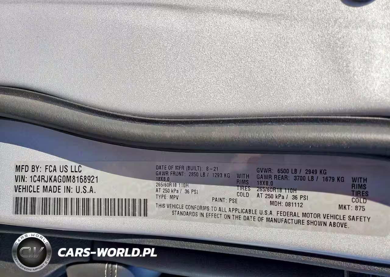 Copart Nr: C-77358465 VIN: 1C4RJKAG0M8168921 Port: Savannah, GA
