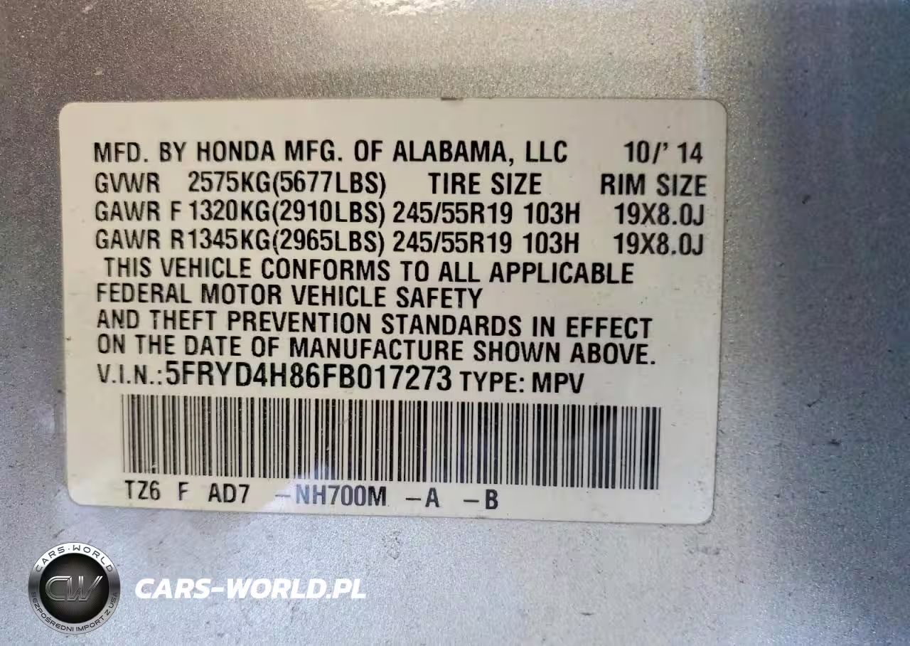 Copart Nr: C-77422925 VIN: 5FRYD4H86FB017273 Port: Indianapolis, IN