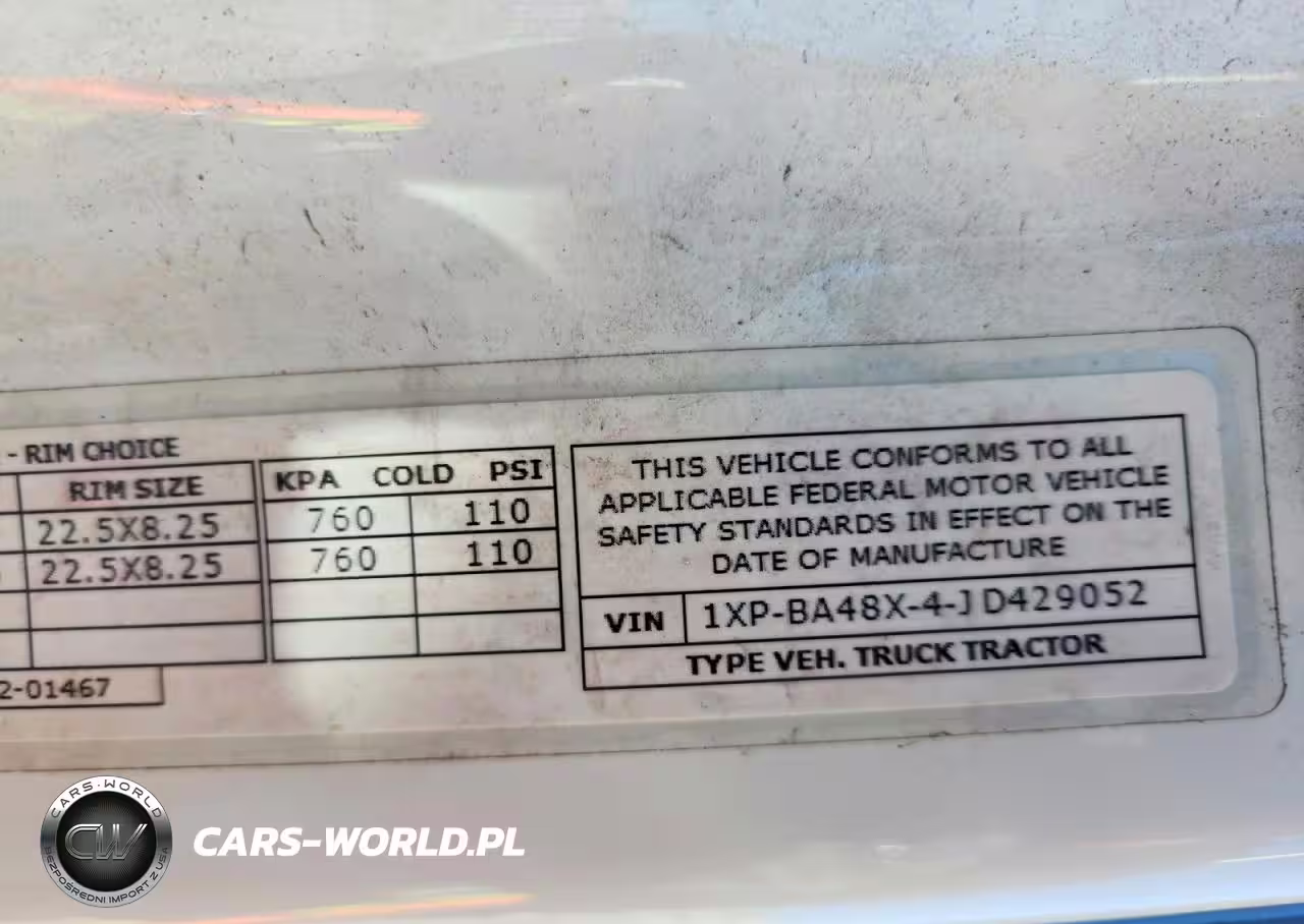 Copart Nr: C-77428615 VIN: 1XPBA48X4JD429052 Port: Houston, TX
