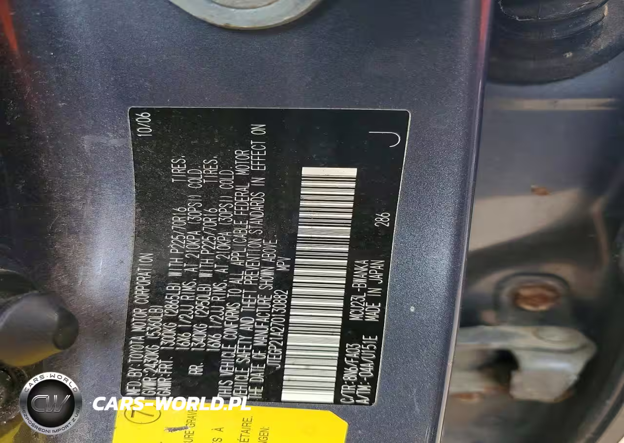 Copart Nr: C-77439635 VIN: JTEGP21A270130882 Port: Indianapolis, IN