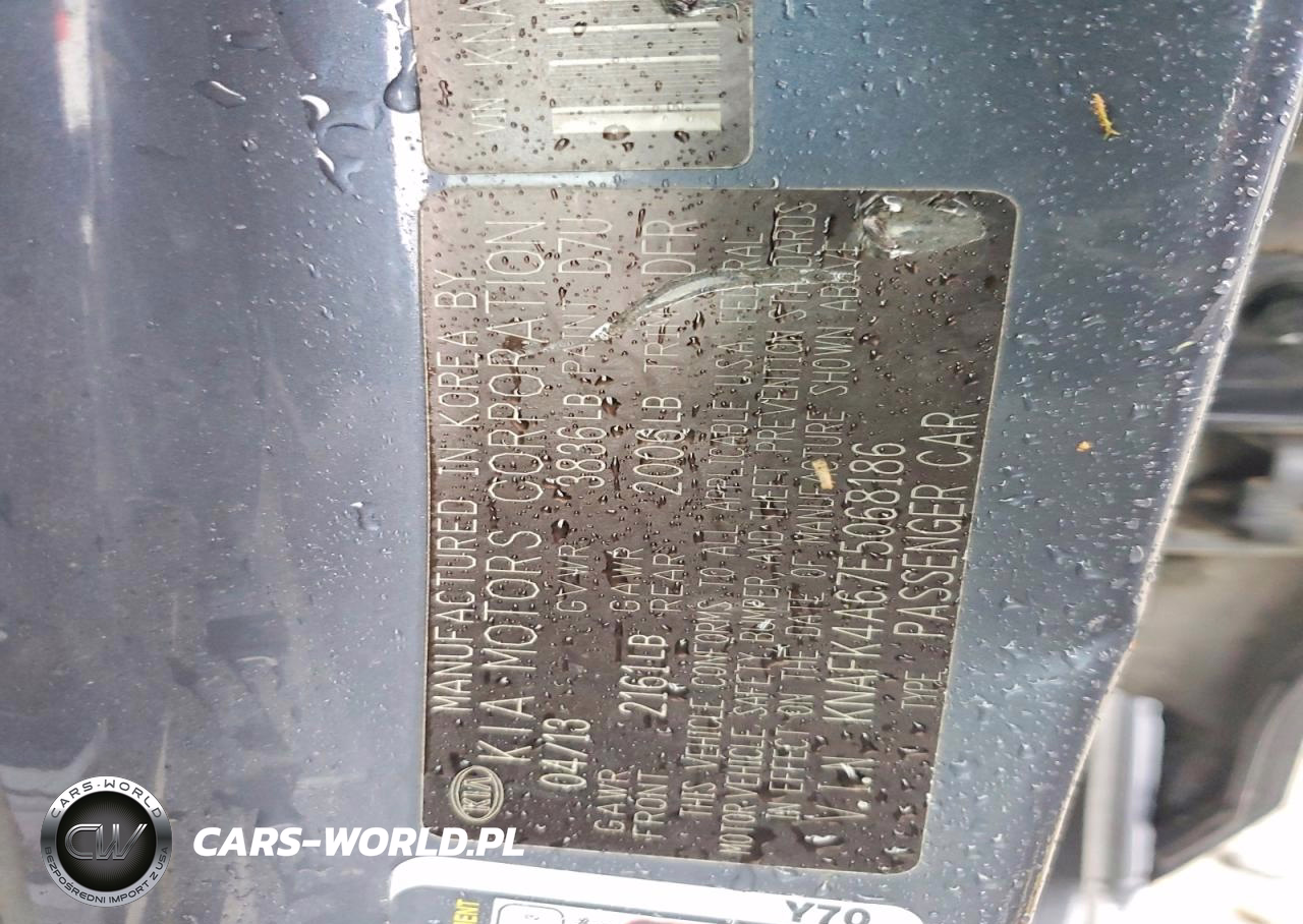 Copart Nr: C-77536065 VIN: KNAFK4A67E5068186 Port: Los Angeles, CA