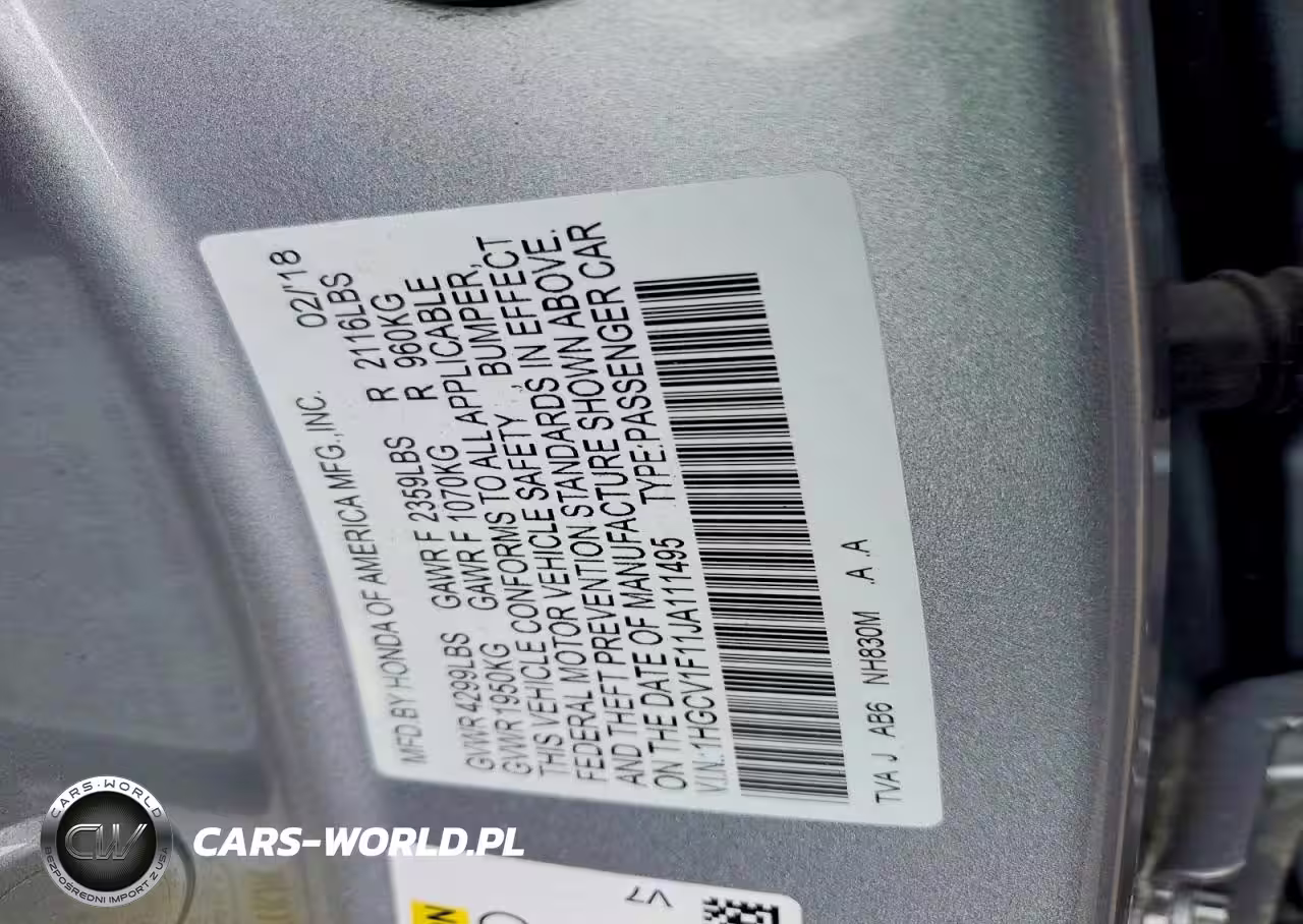 Copart Nr: C-77594995 VIN: 1HGCV1F11JA111495 Port: Elizabeth, NJ