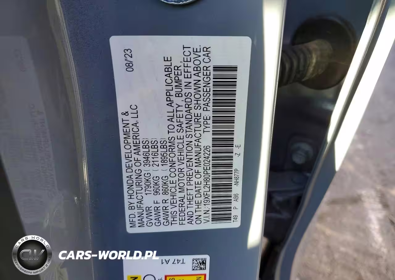 Copart Nr: C-77600705 VIN: 19XFL2H80PE024226 Port: Los Angeles, CA