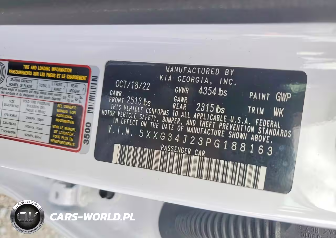 Copart Nr: C-77604285 VIN: 5XXG34J23PG188163 Port: Savannah, GA