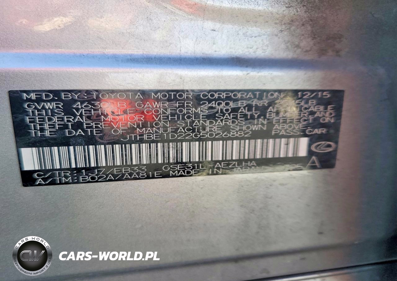 Copart Nr: C-77606995 VIN: JTHBE1D22G5026882 Port: Los Angeles, CA