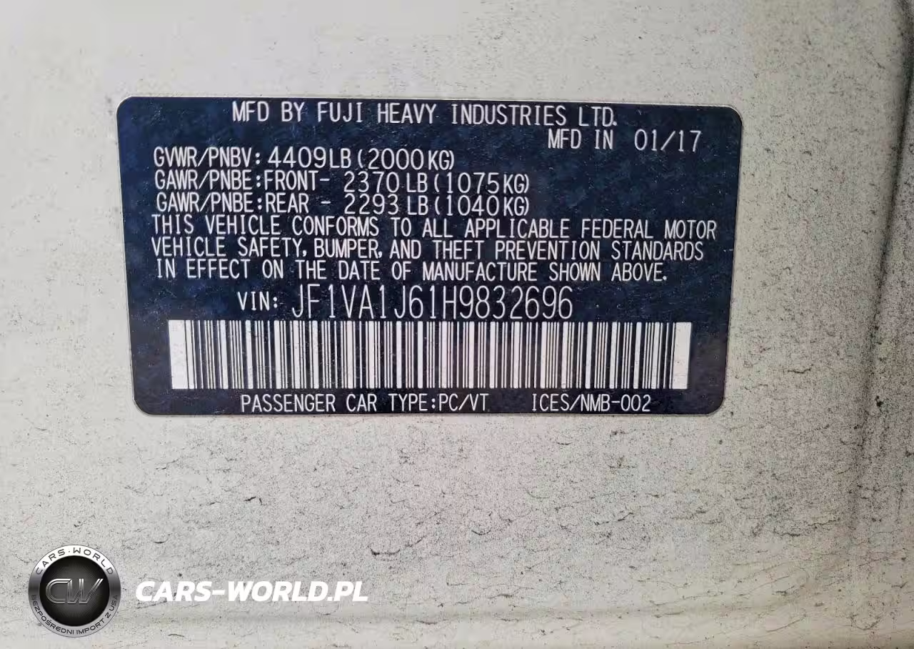 Copart Nr: C-77630625 VIN: JF1VA1J61H9832696 Port: Los Angeles, CA