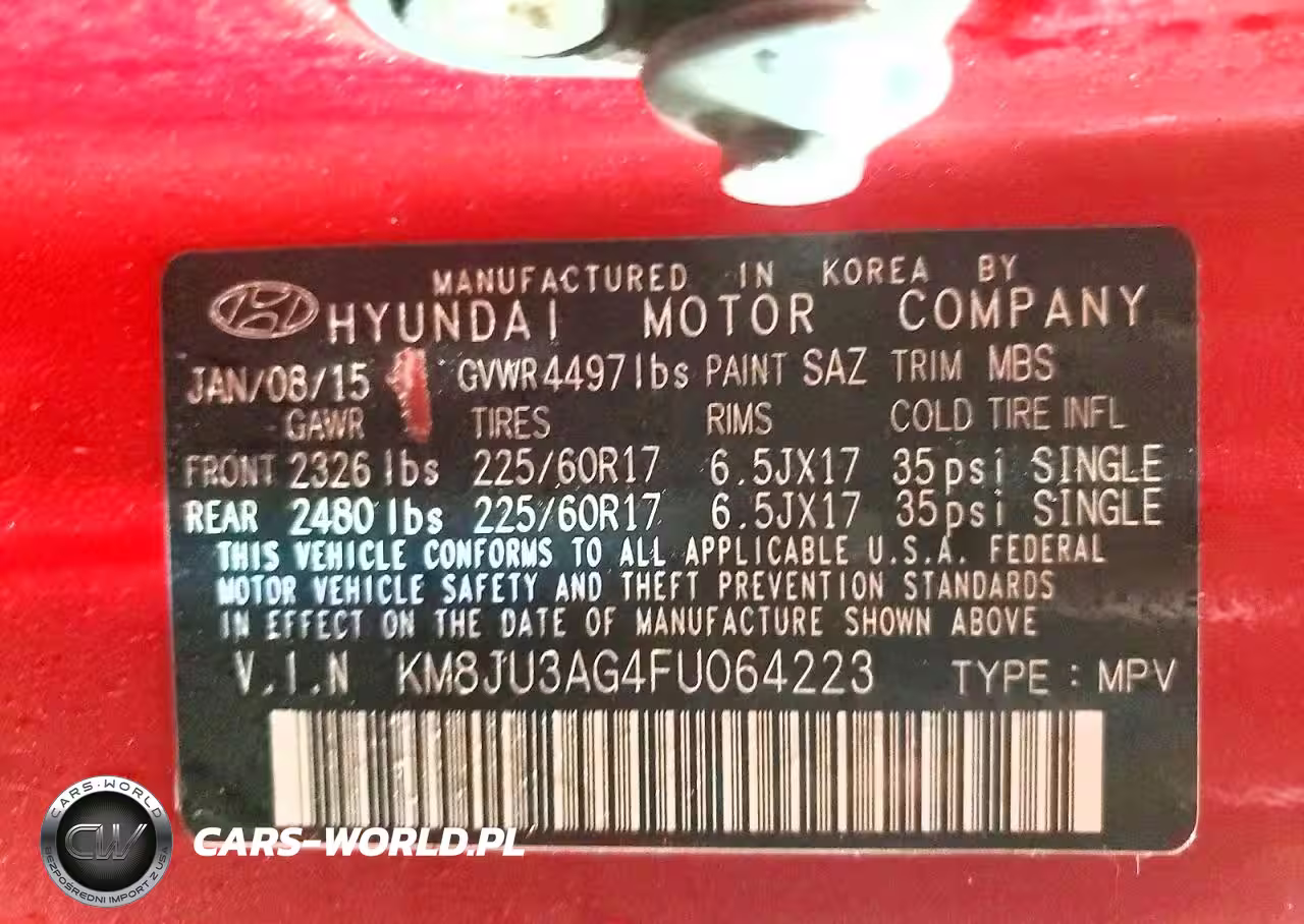 Copart Nr: C-77685405 VIN: KM8JU3AG4FU064223 Port: Indianapolis, IN