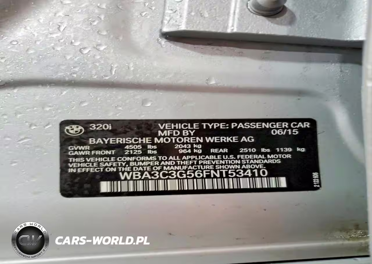 Copart Nr: C-77718365 VIN: WBA3C3G56FNT53410 Port: Indianapolis, IN