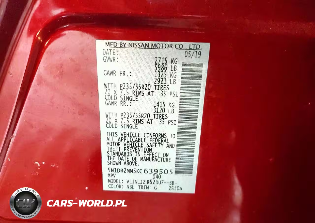 Copart Nr: C-77741885 VIN: 5N1DR2MM5KC639505 Port: Indianapolis, IN