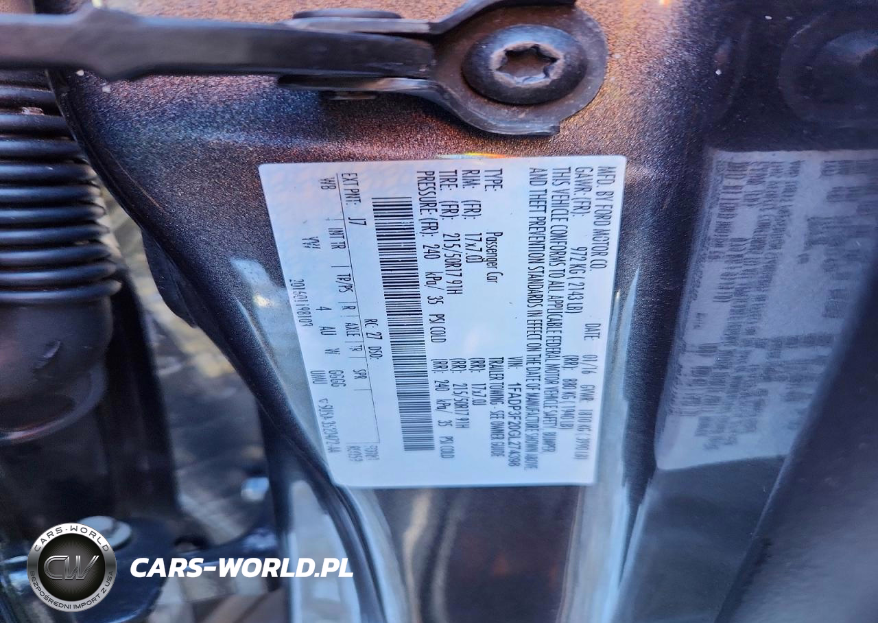 Copart Nr: C-77807485 VIN: 1FADP3F20GL274398 Port: Elizabeth, NJ