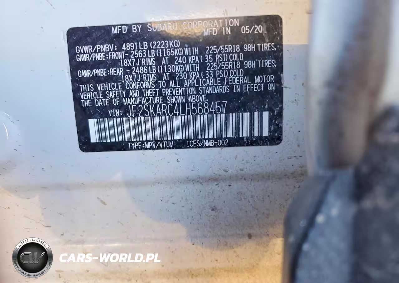 Copart Nr: C-77827665 VIN: JF2SKARC4LH568457 Port: Indianapolis, IN