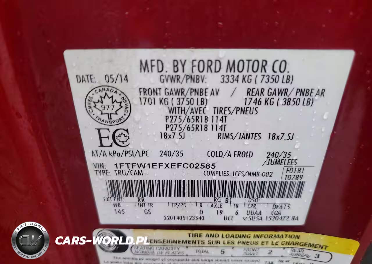 Copart Nr: C-77839335 VIN: 1FTFW1EFXEFC02585 Port: Indianapolis, IN
