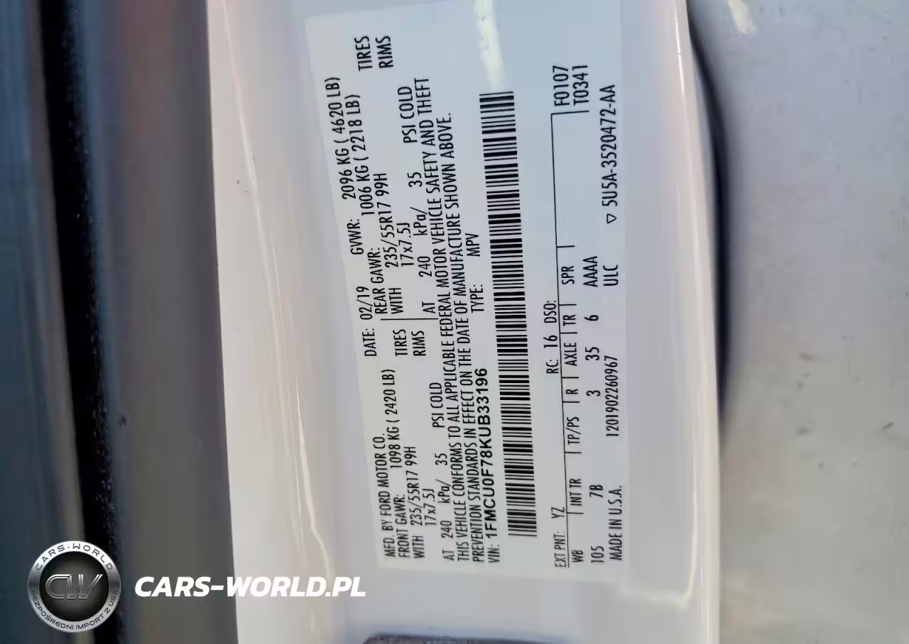Copart Nr: C-77853665 VIN: 1FMCU0F78KUB33196 Port: Houston, TX