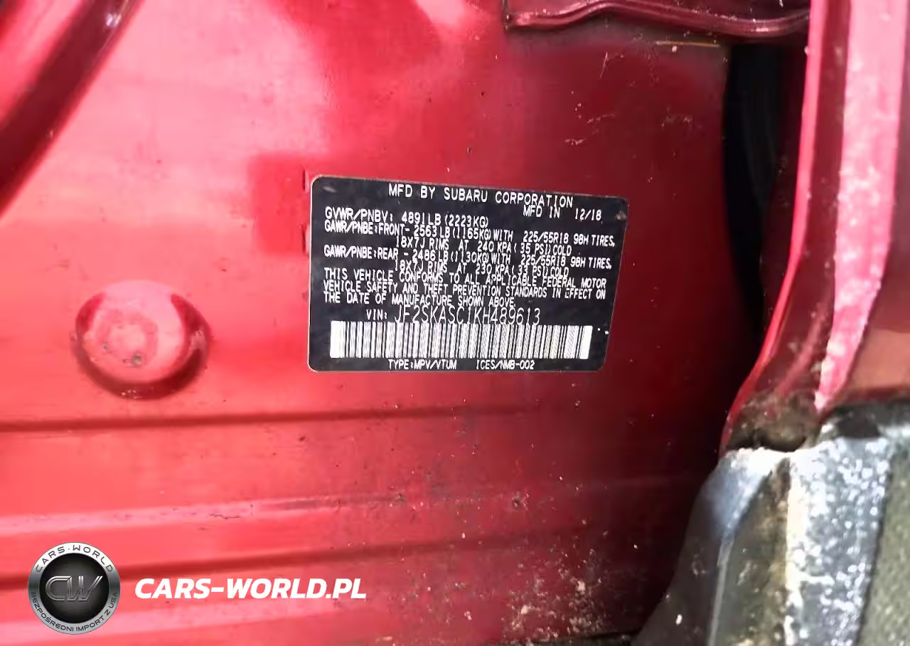 Copart Nr: C-77876605 VIN: JF2SKASC1KH489613 Port: Elizabeth, NJ