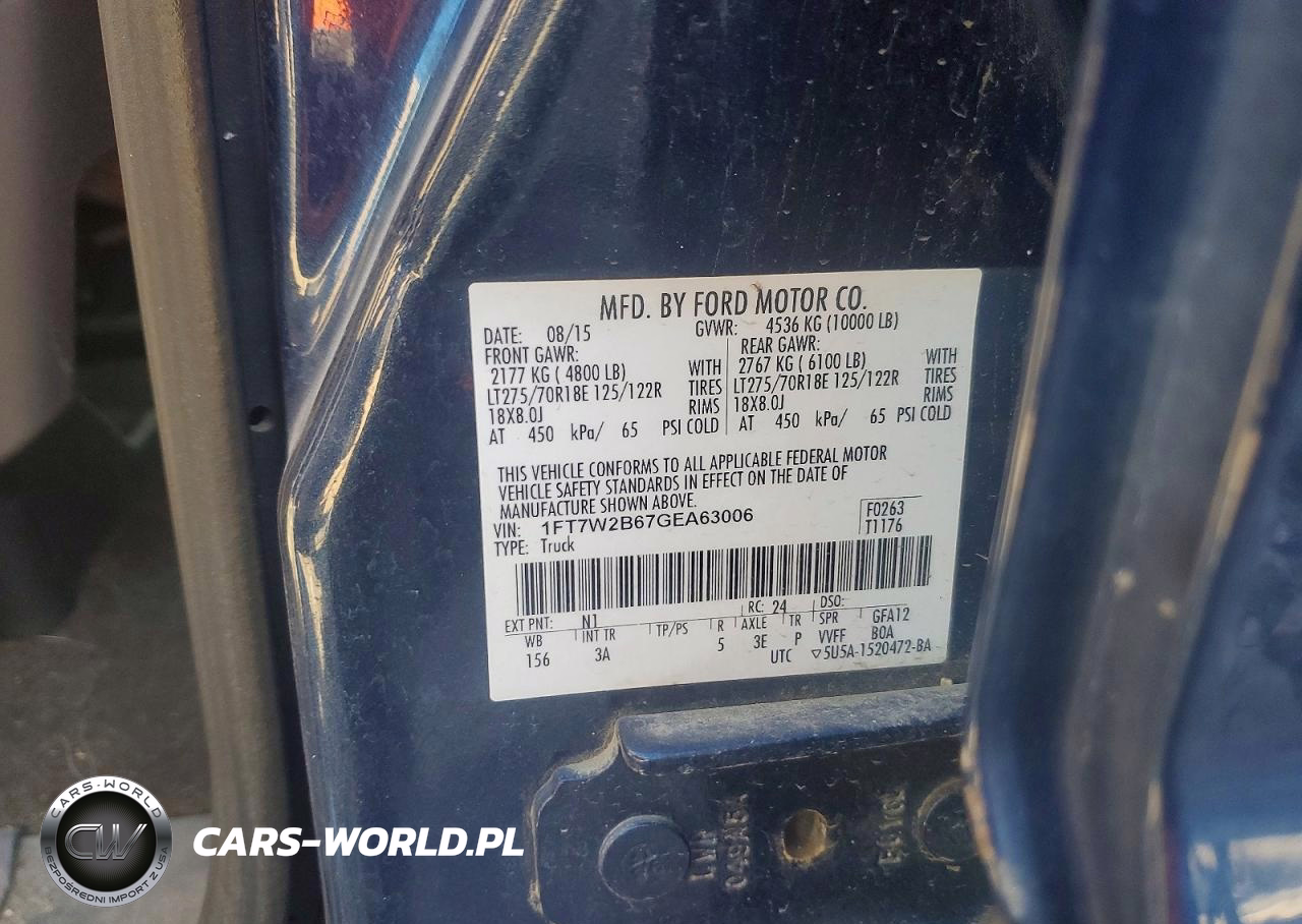 Copart Nr: C-77882655 VIN: 1FT7W2B67GEA63006 Port: Indianapolis, IN