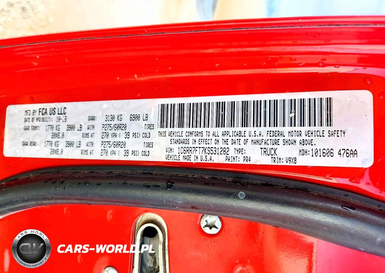 Copart Nr: C-77915105 VIN: 1C6RR7FT7KS531282 Port: Houston, TX