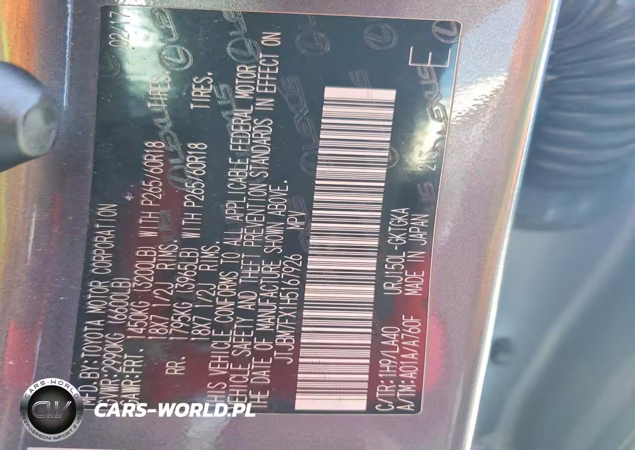 Copart Nr: C-77972045 VIN: JTJBM7FX1H5167926 Port: Savannah, GA