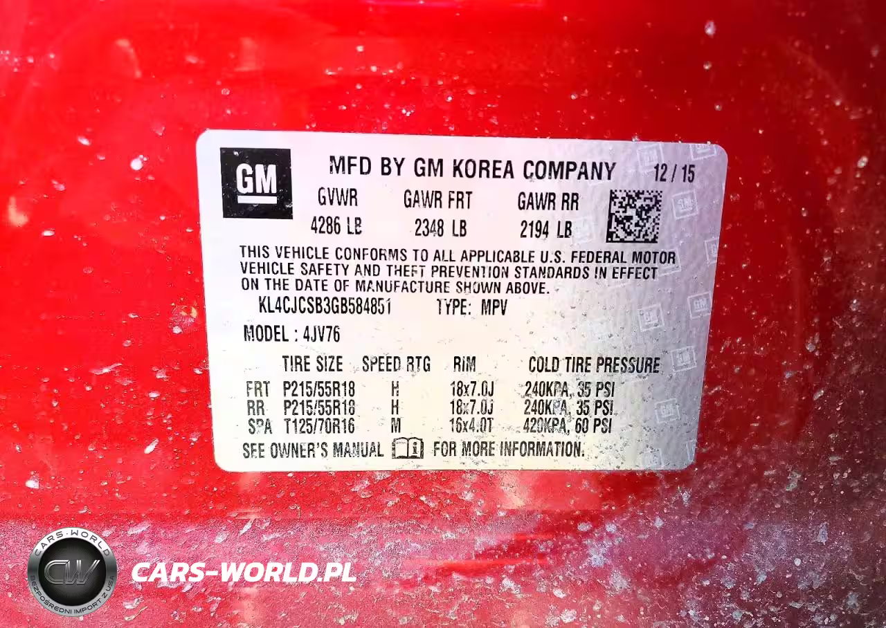 Copart Nr: C-78030905 VIN: KL4CJCSB3GB584851 Port: Indianapolis, IN