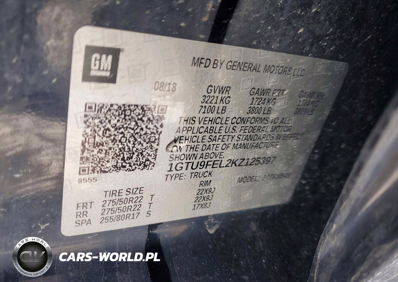 Copart Nr: C-78044625 VIN: 1GTU9FEL2KZ125397 Port: Indianapolis, IN