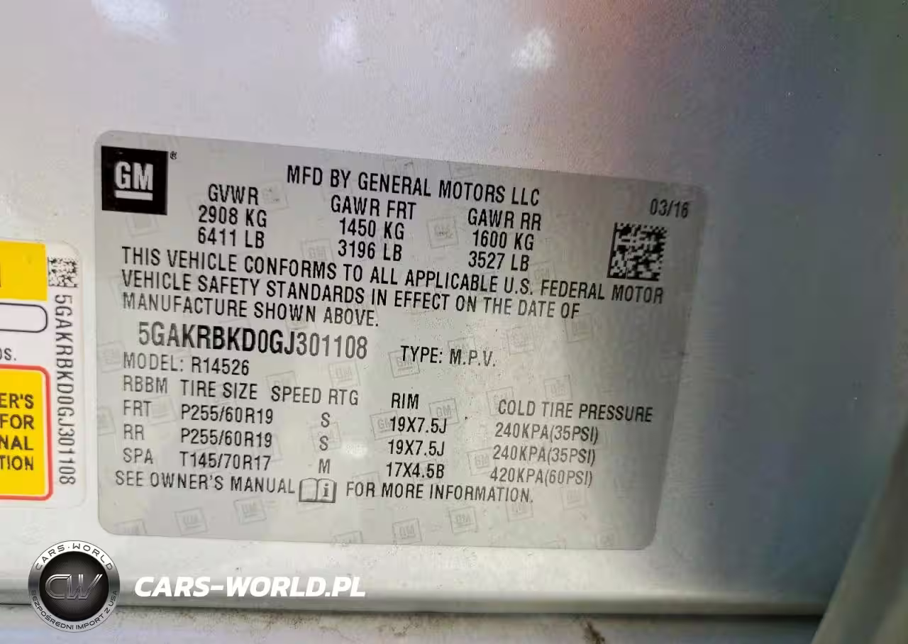 Copart Nr: C-78048675 VIN: 5GAKRBKD0GJ301108 Port: Indianapolis, IN