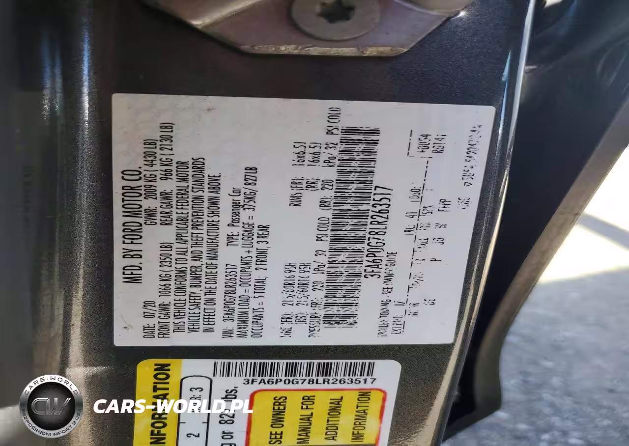 Copart Nr: C-78067775 VIN: 3FA6P0G78LR263517 Port: Indianapolis, IN