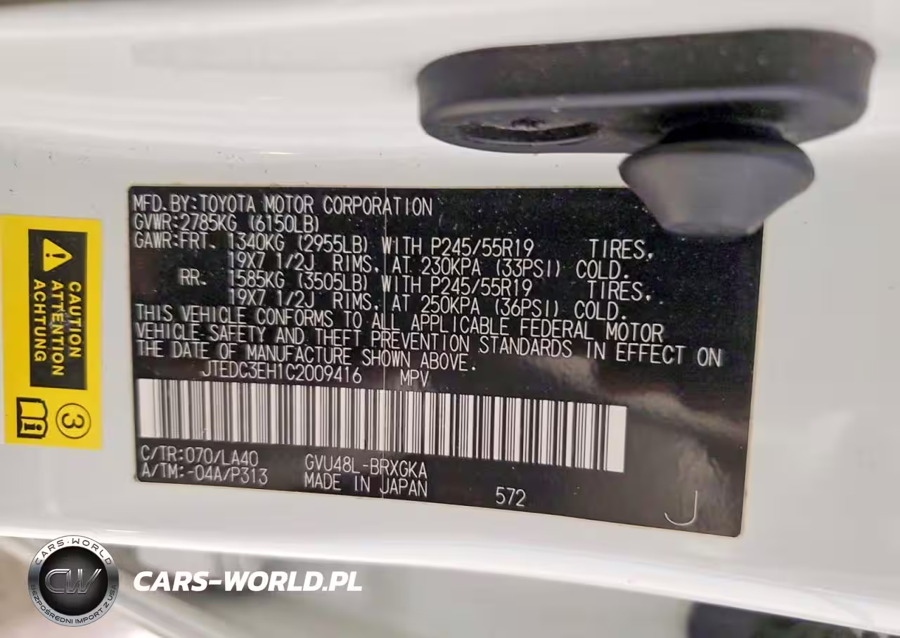 Copart Nr: C-78073285 VIN: JTEDC3EH1C2009416 Port: Elizabeth, NJ