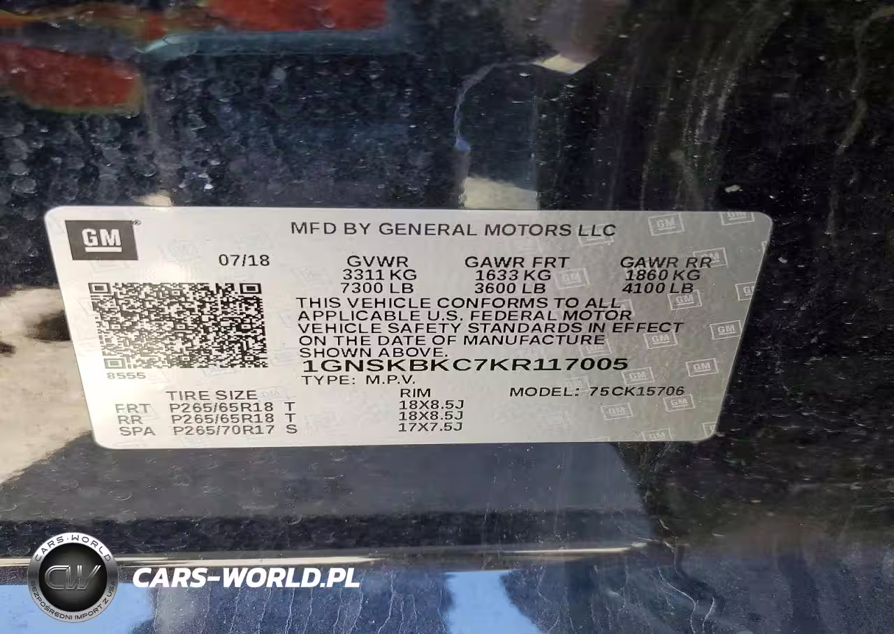 Copart Nr: C-78098575 VIN: 1GNSKBKC7KR117005 Port: Elizabeth, NJ