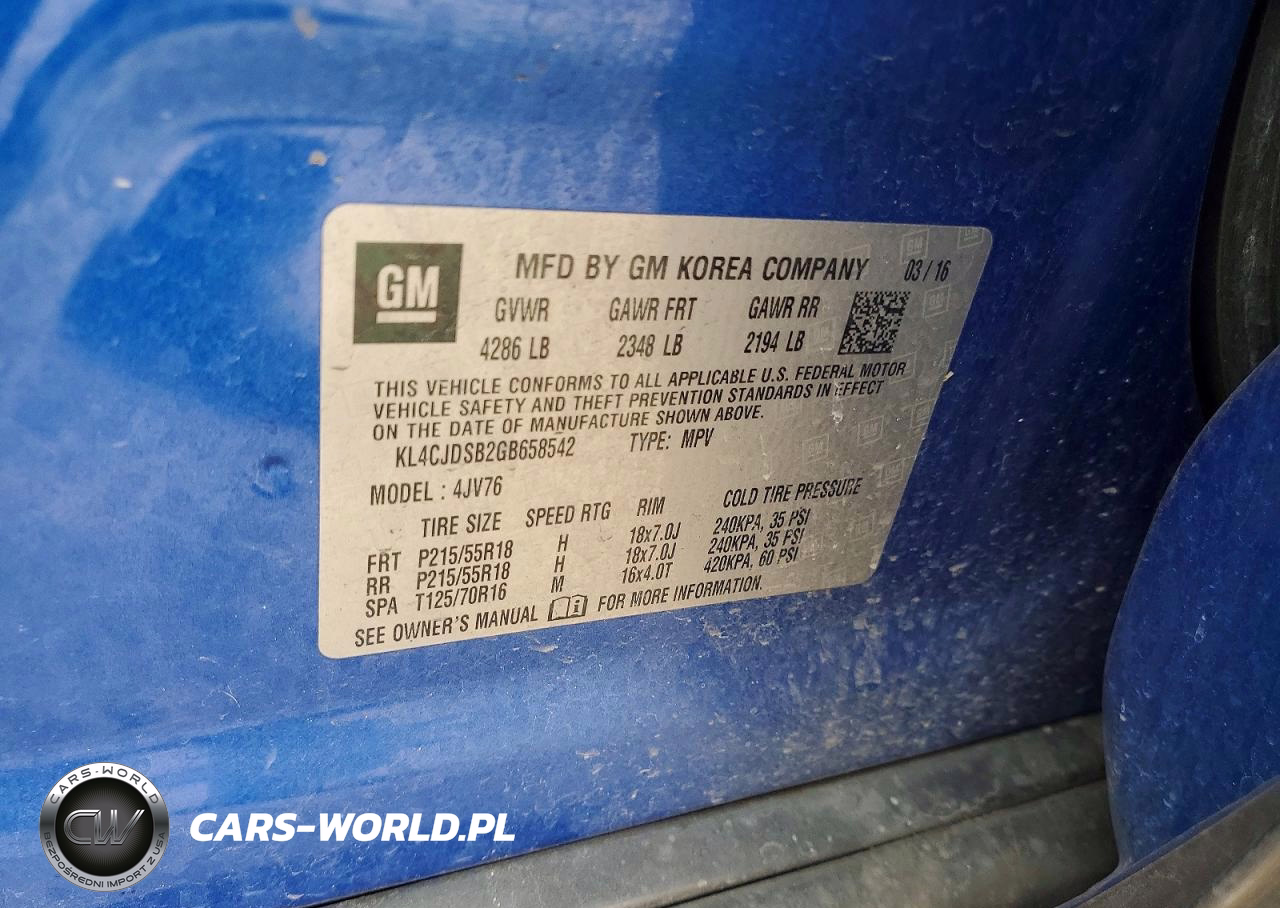 Copart Nr: C-78114545 VIN: KL4CJDSB2GB658542 Port: Houston, TX