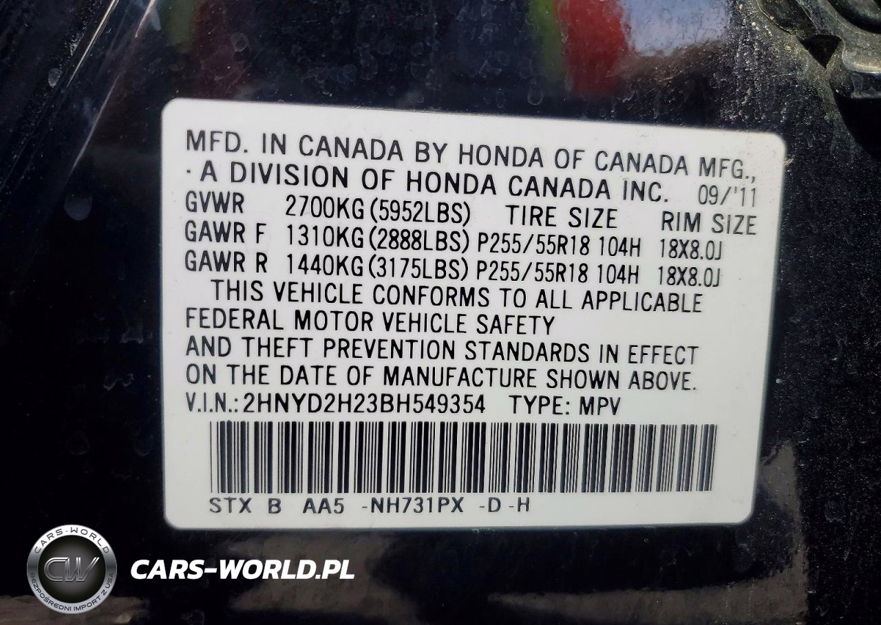 Copart Nr: C-78136955 VIN: 2HNYD2H23BH549354 Port: Los Angeles, CA