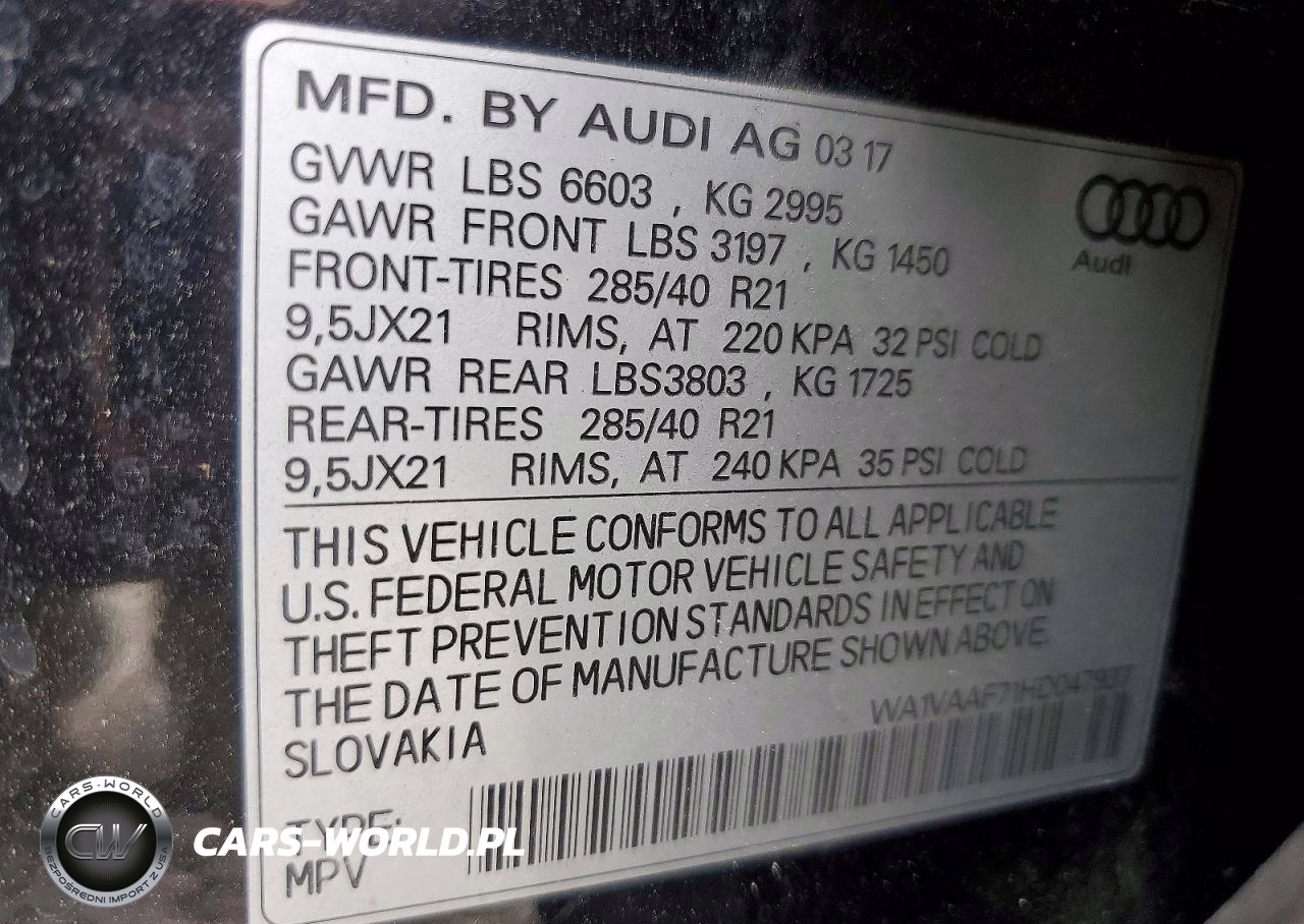 Copart Nr: C-78143945 VIN: WA1VAAF71HD047937 Port: Savannah, GA