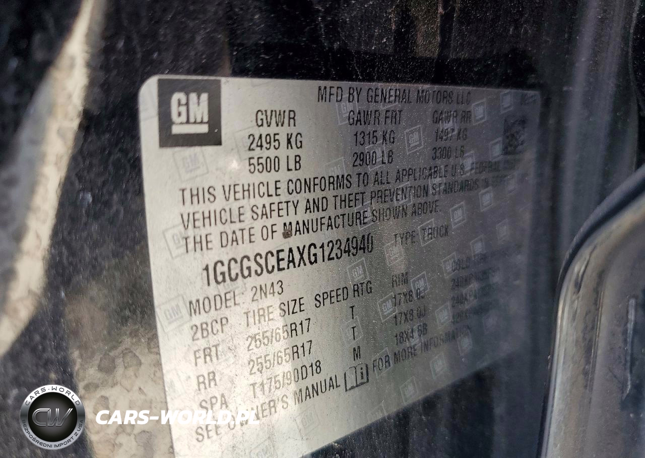 Copart Nr: C-78173995 VIN: 1GCGSCEAXG1234940 Port: Savannah, GA