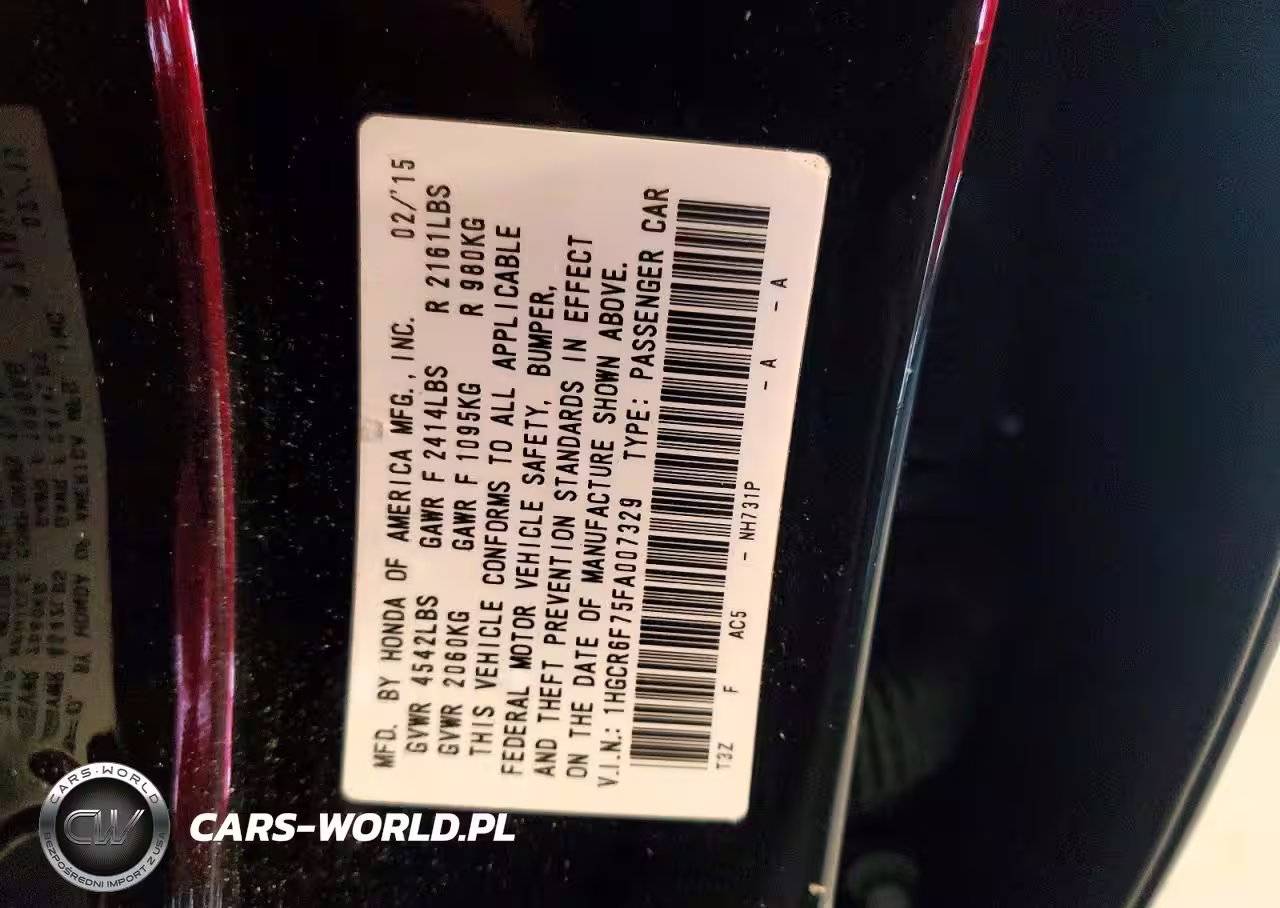 Copart Nr: C-78177145 VIN: 1HGCR6F75FA007329 Port: Los Angeles, CA