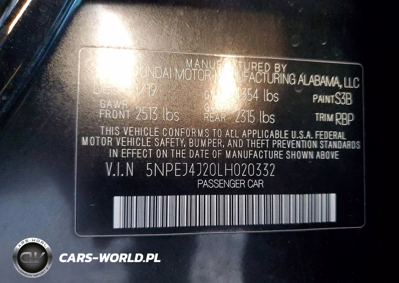 Copart Nr: C-78229995 VIN: 5NPEJ4J20LH020332 Port: Savannah, GA