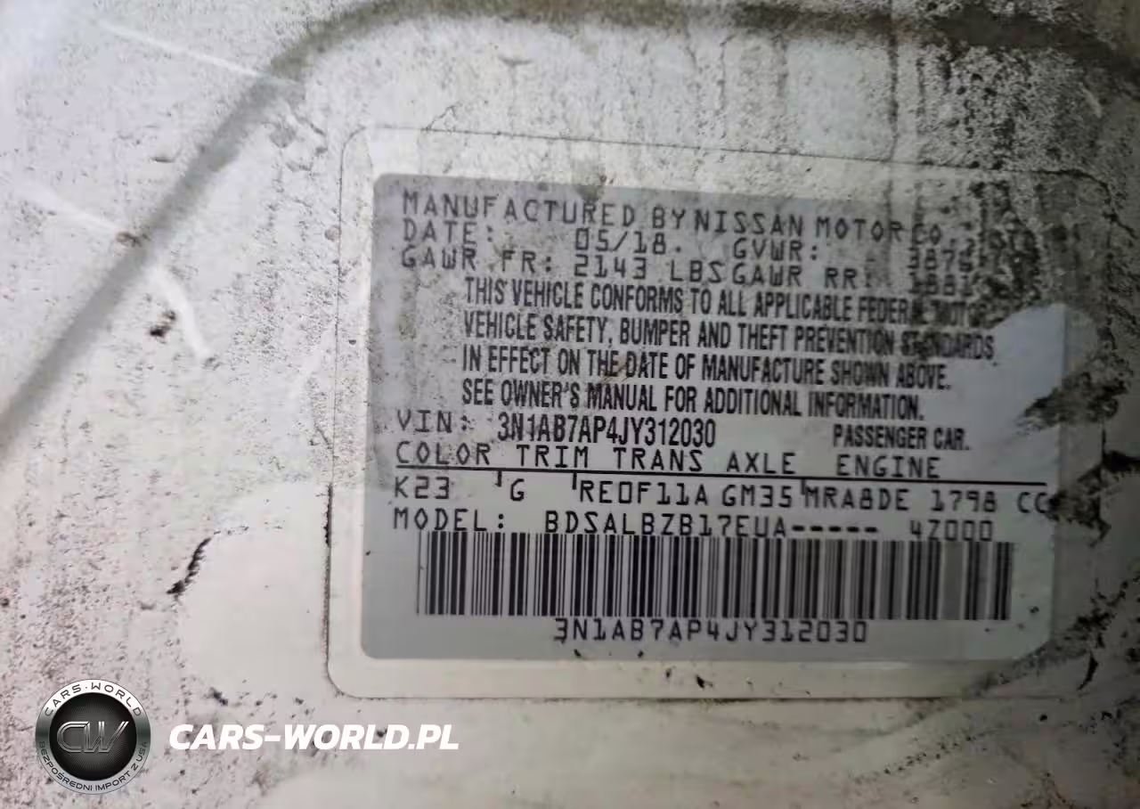 Copart Nr: C-78235895 VIN: 3N1AB7AP4JY312030 Port: Elizabeth, NJ