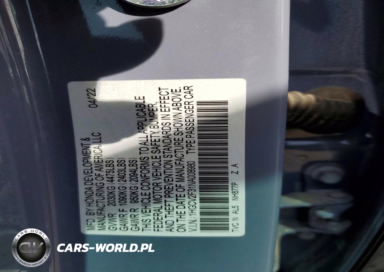 Copart Nr: C-78248865 VIN: 1HGCV2F31NA008980 Port: Houston, TX