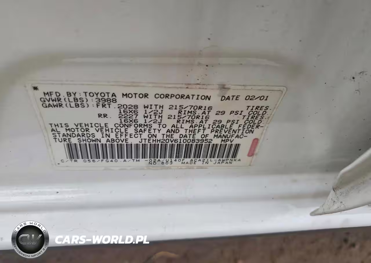 Copart Nr: C-78359505 VIN: JTEHH20V610083952 Port: Indianapolis, IN