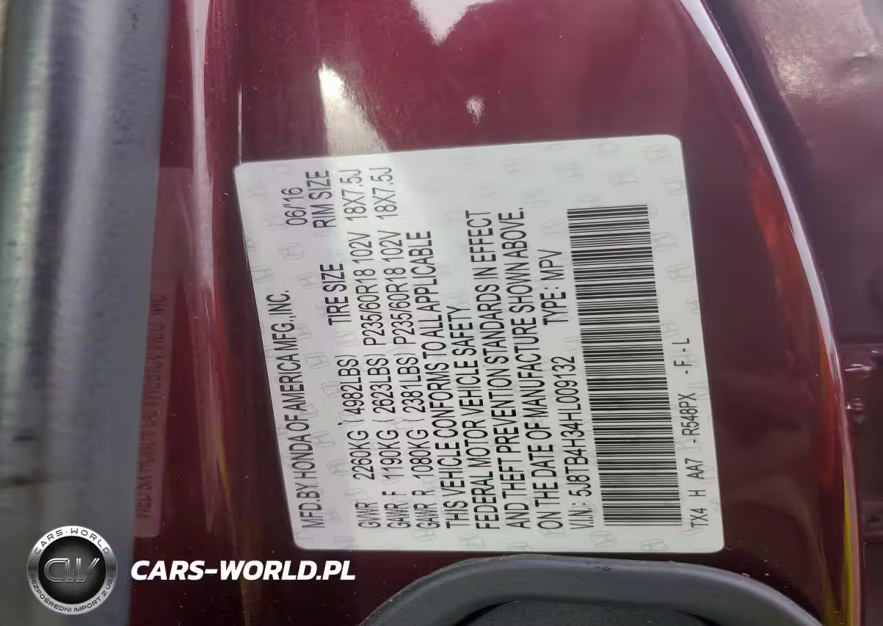 Copart Nr: C-78359995 VIN: 5J8TB4H34HL009132 Port: Elizabeth, NJ